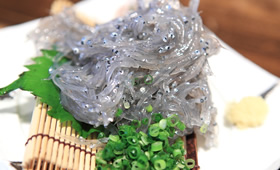 かたくち鰯の稚魚で、4月1日くらいから1月15日までが漁期です、雨や風で漁が無い事もあります、生じらす・茹でじらすでお出しします。